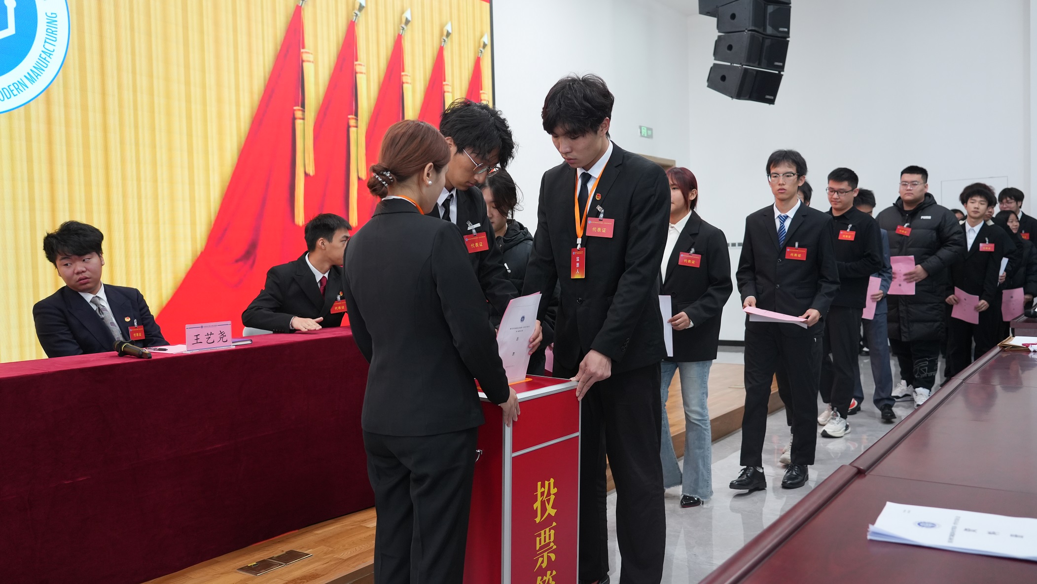 大会在激昂的团歌声中圆满闭幕。随后,新当选的主席团成员及常任代表在党建活动室召开第一次全体会议,标志着新一届学生会工作正式启航。